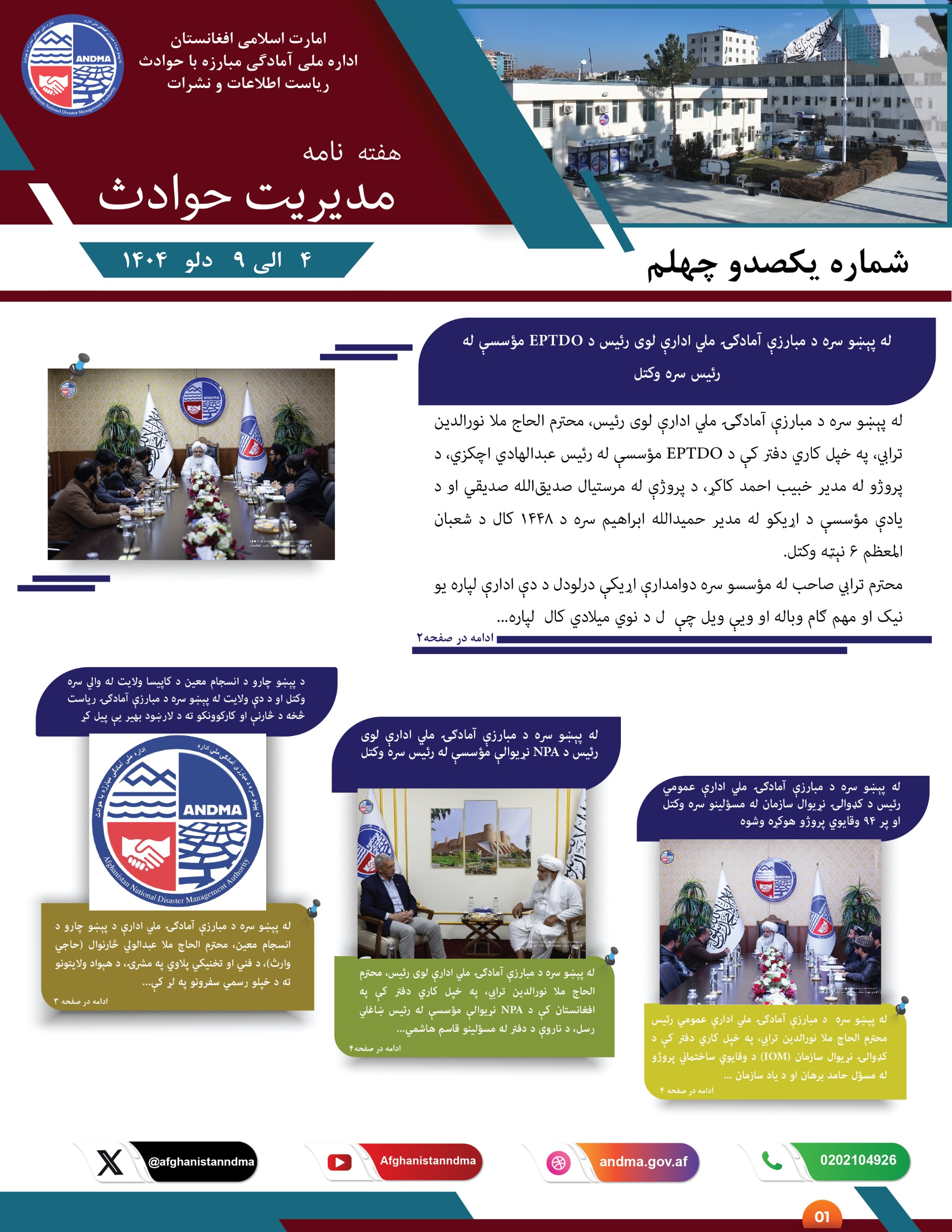 به منظور تطبیق اهداف امارت اسلامی افغانستان در عرصه ایجاد اداره سالم و سپردن کار به اهل آن به تعداد ( 15) بست قراردادی NTA اداره ملی آمادگی مبارزه با حوادث مطابق ماده (15) قانون خدمات . . .
