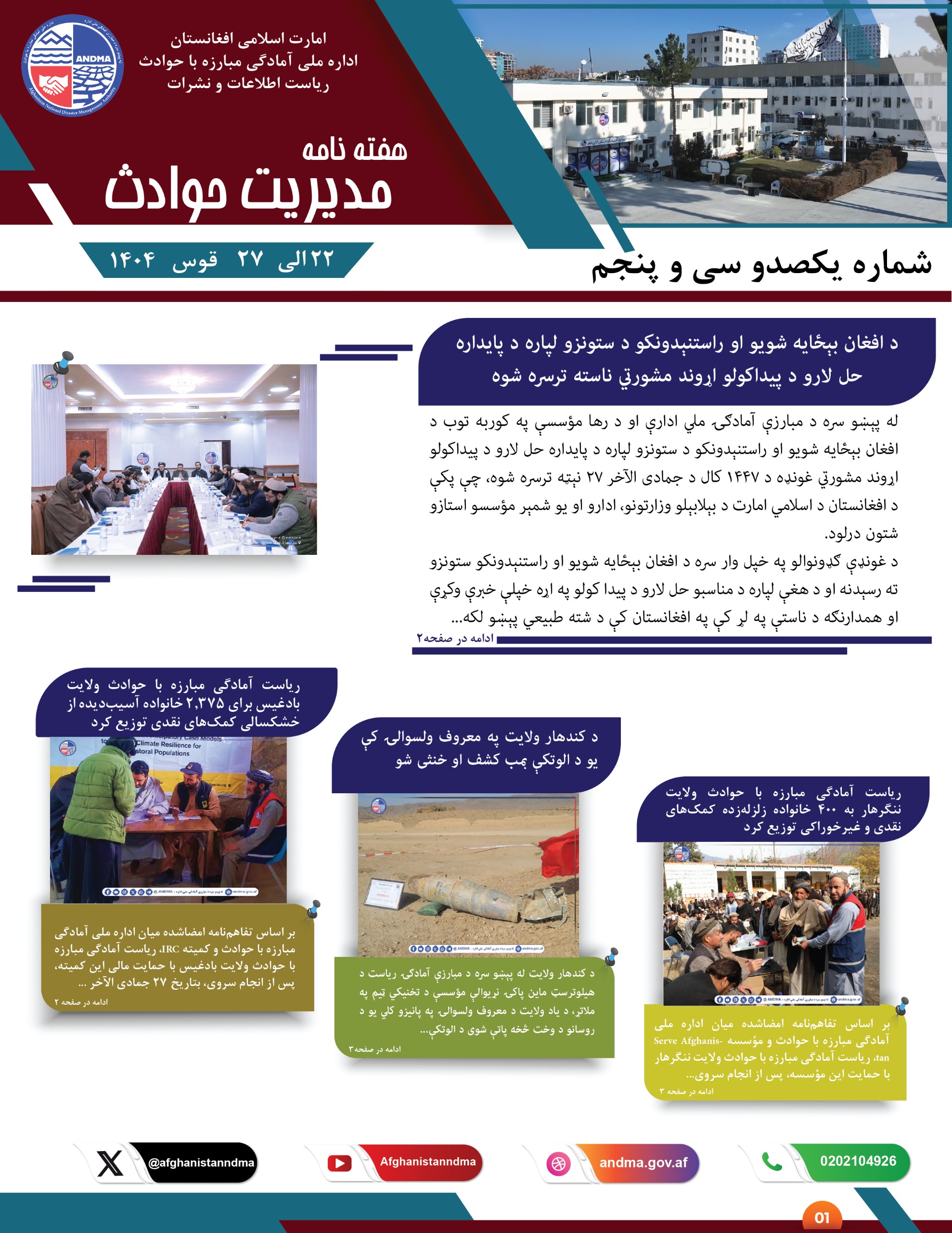 بر اساس هدایت محترم الحاج ملا نورالدین ترابی، رئیس عمومی اداره ملی آمادگی مبارزه با حوادث، ریاست آمادگی مبارزه با حوادث ولایت هرات با حمایت ریاست فواید عامه آن ولایت، کارهای پاککاری یک. . .