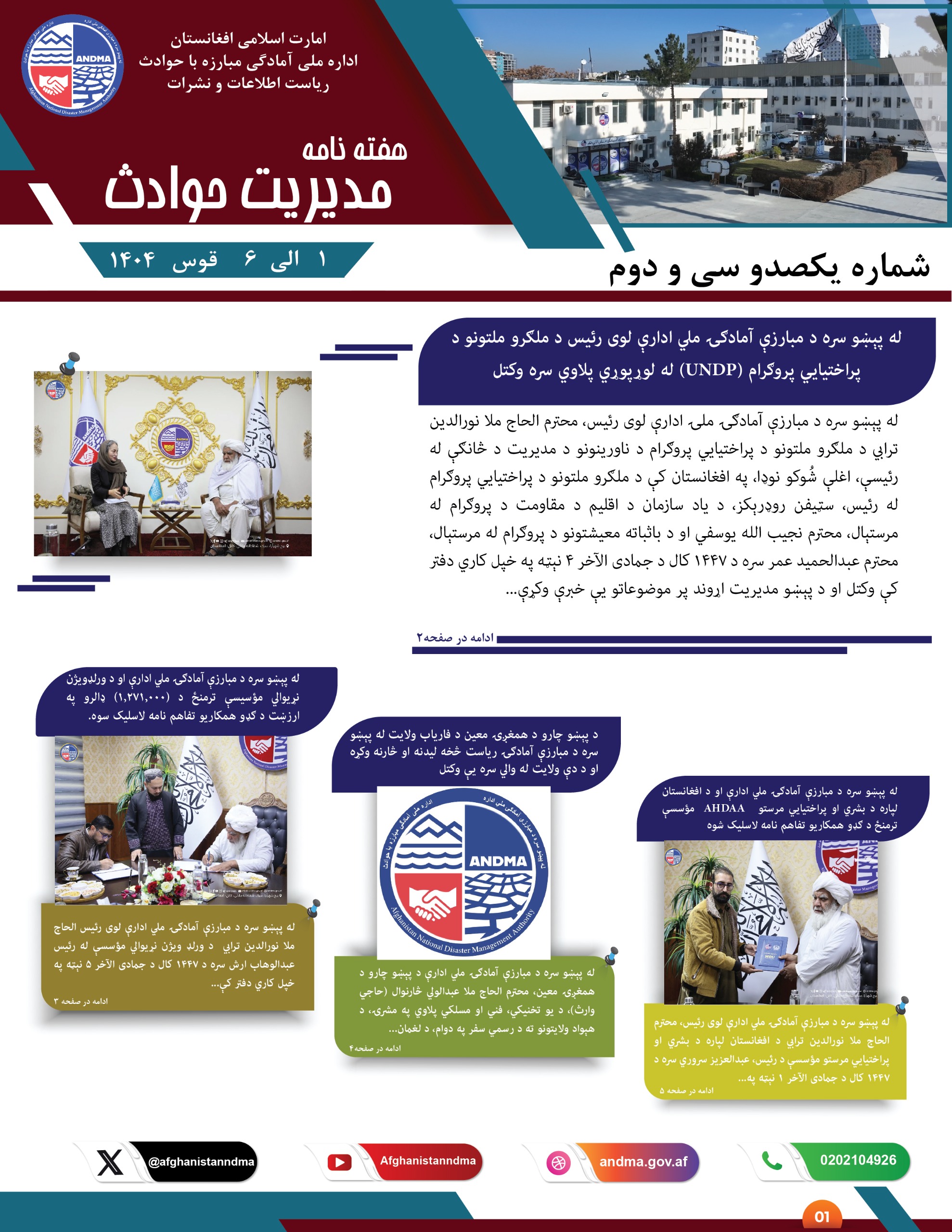 شماره یکصدو سی هم، هفته نامه مدیریت حوادث، حاوی گزارش فعالیت ها و کارکرد های یک هفته گذشته اداره ملی آمادگی مبارزه با حوادث و پیام آگاهی عامه به نشر رسید.