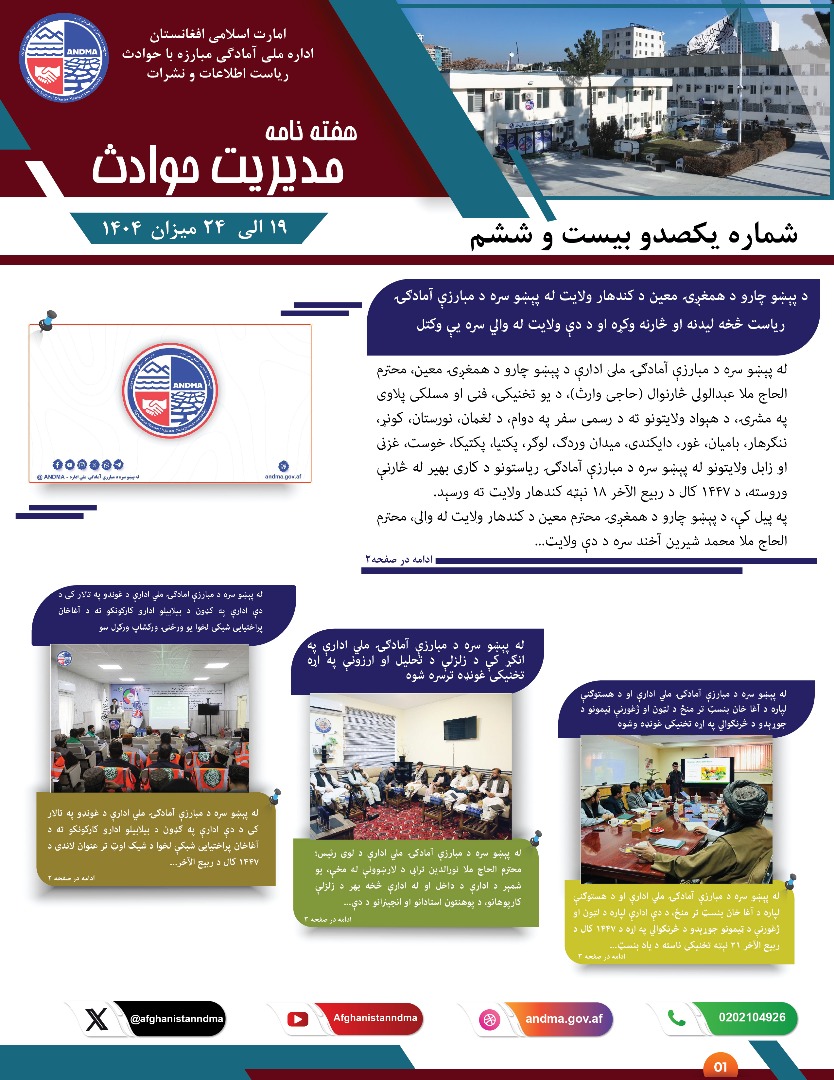 قرار است اداره ملی آمادگی مبارزه با حوادث، روز سه شنبه، ۲۶ حمل سال روان، با حضور مقامات عالی امارت اسلامی و موسسات بینالمللی، از روز جهانی ماین پاکی تجلیل به عمل آورد، بنا از تمام . . .