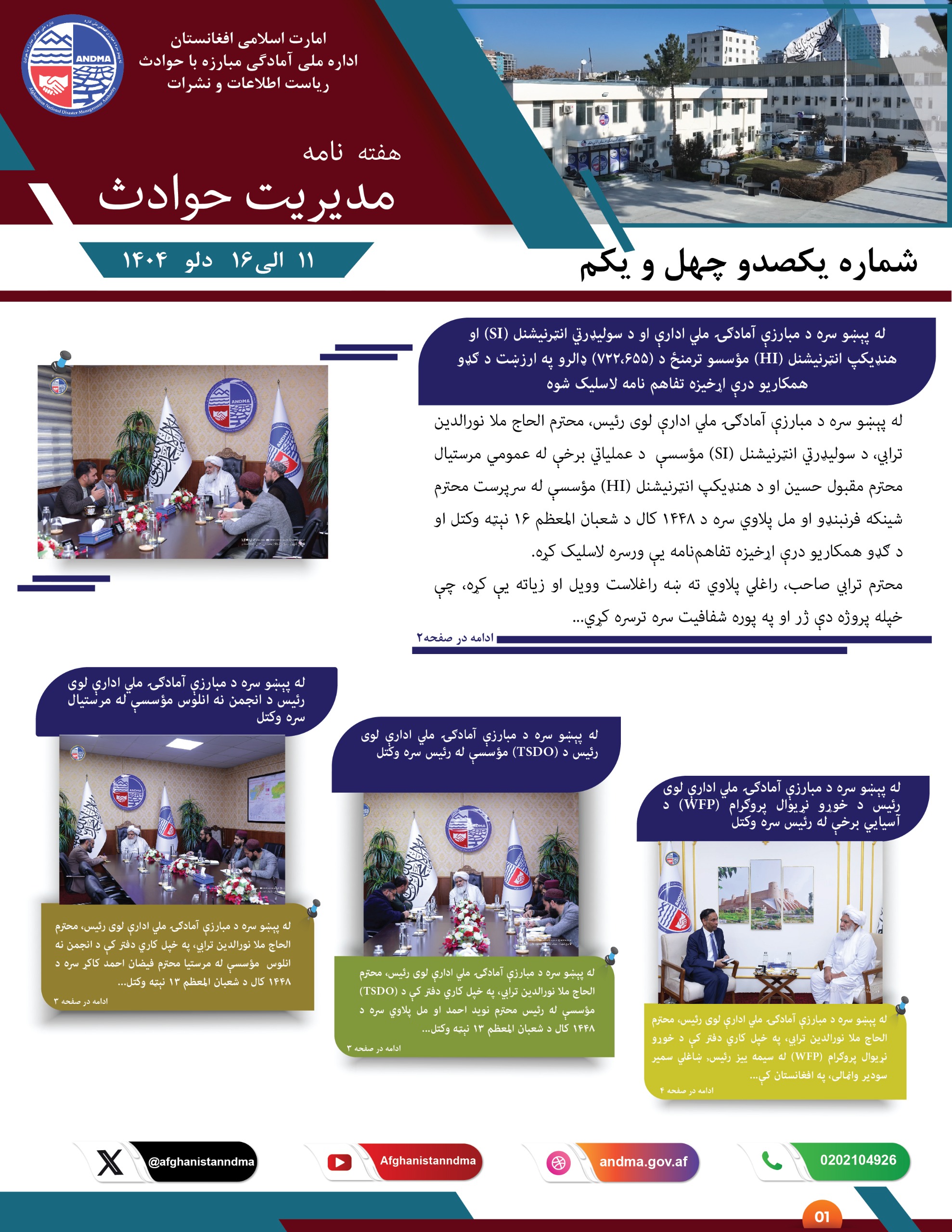 له پېښو سره د مبارزې آمادګۍ ملي ادارې د لوی رئیس محترم الحاج ملا نورالدین ترابي د لارښوونې له مخې، د میدان وردګ ولایت له پېښو سره د مبارزې آمادګۍ ریاست د دې ولایت د دایمیرداد ولسوالۍ په. . .