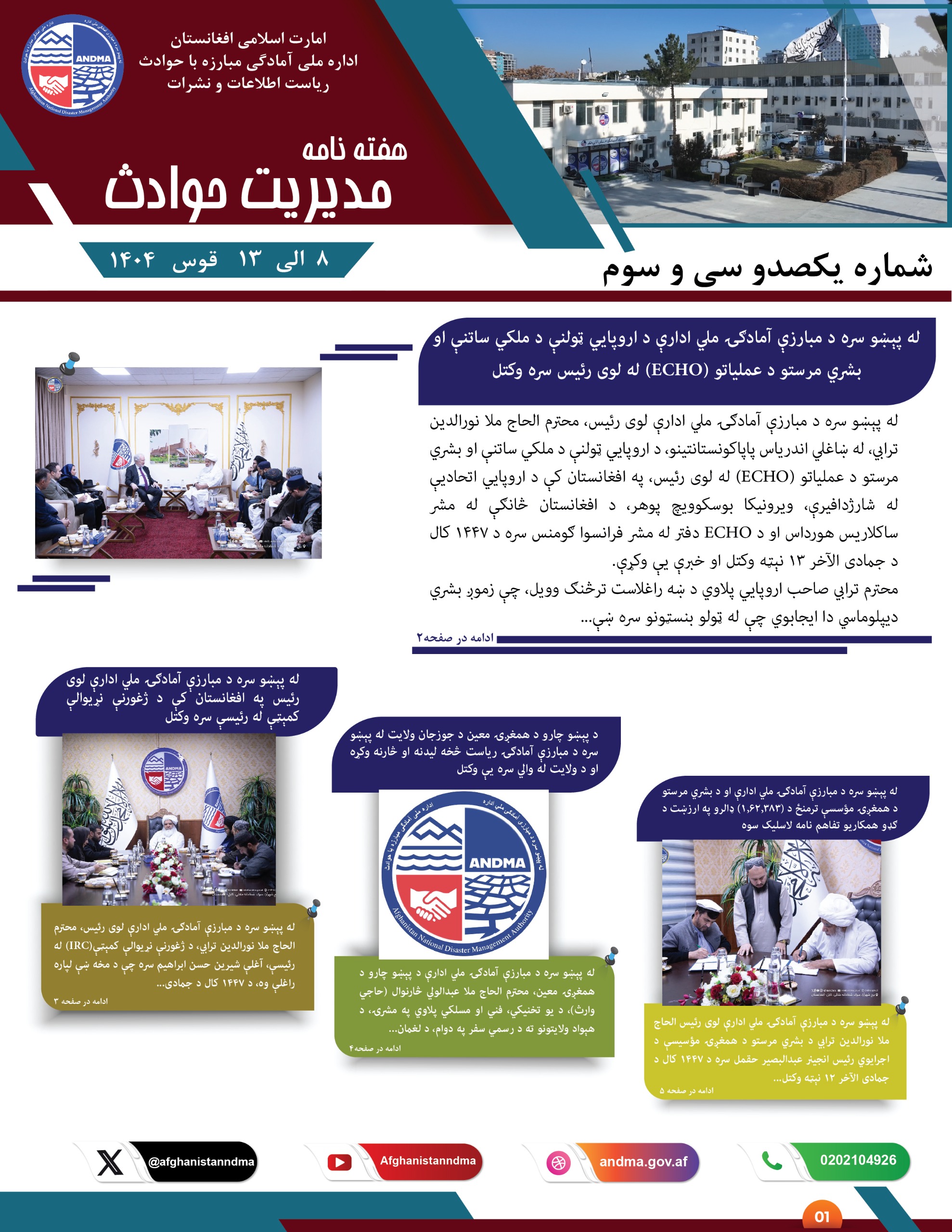 د سیلابي لارو او د خوړونو د پاکولو په هکله له پېښو سره د مبارزې آمادګۍ ملي ادارې د لوی رئیس، محترم الحاج ملا نورالدین ترابي د لارښوونې له پر بنسټ، د پنجشیر ولایت له پېښو سره د مبارزې. . .